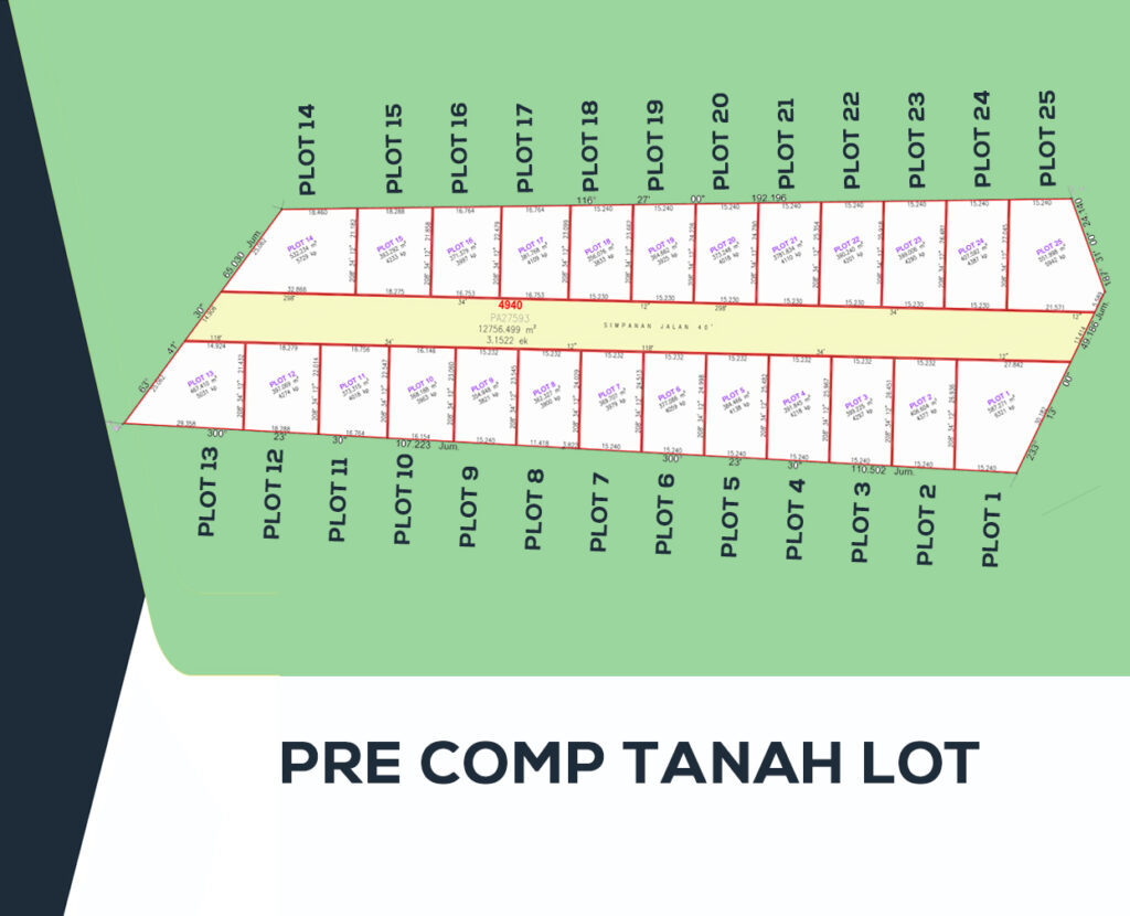 Lot banglo yang di bangunkan dengan infra lengkap, berstatus bangunan, berada di kawasan tinggi, terletak di tepi jalan, serta bebas banjir.
